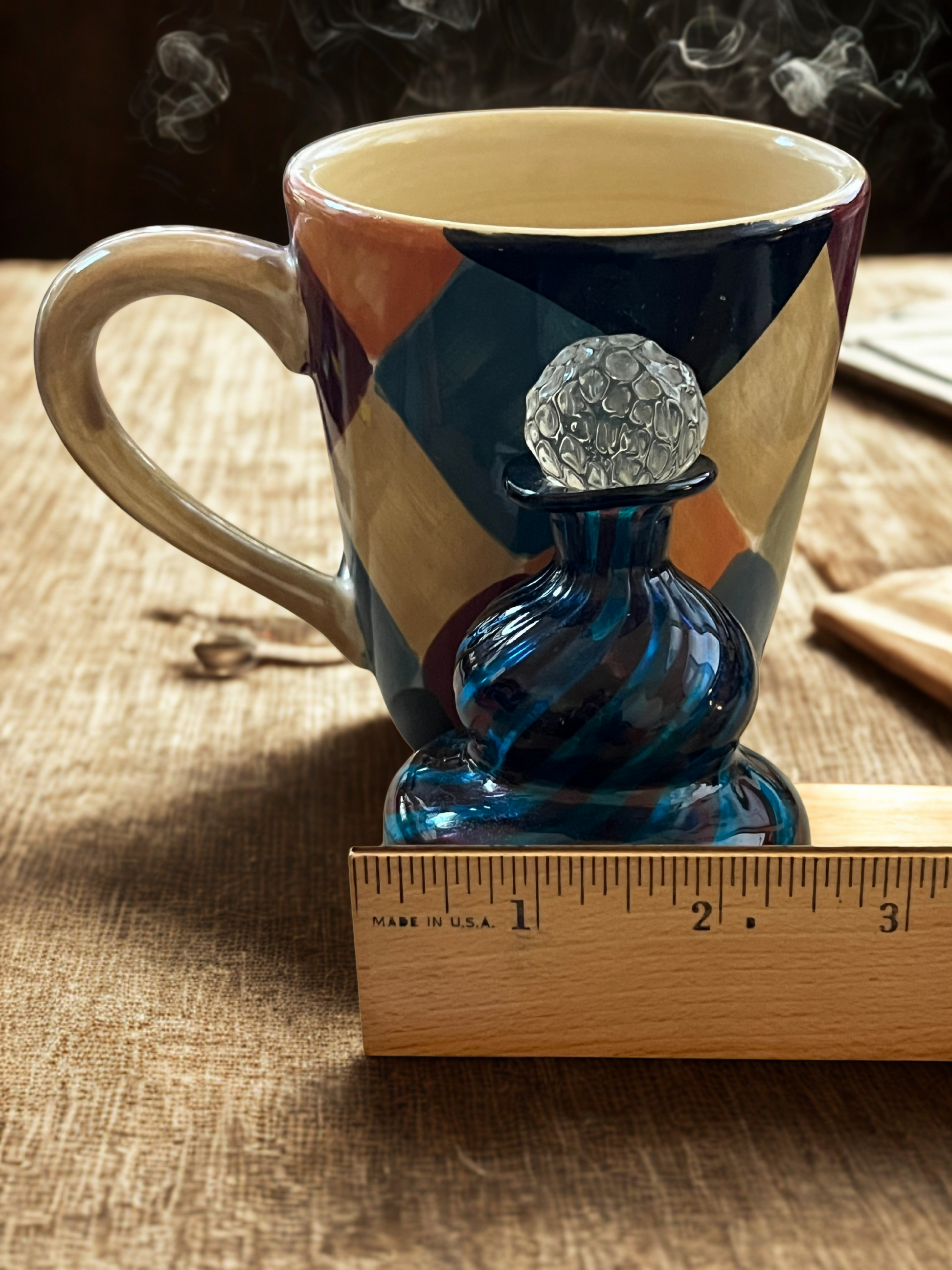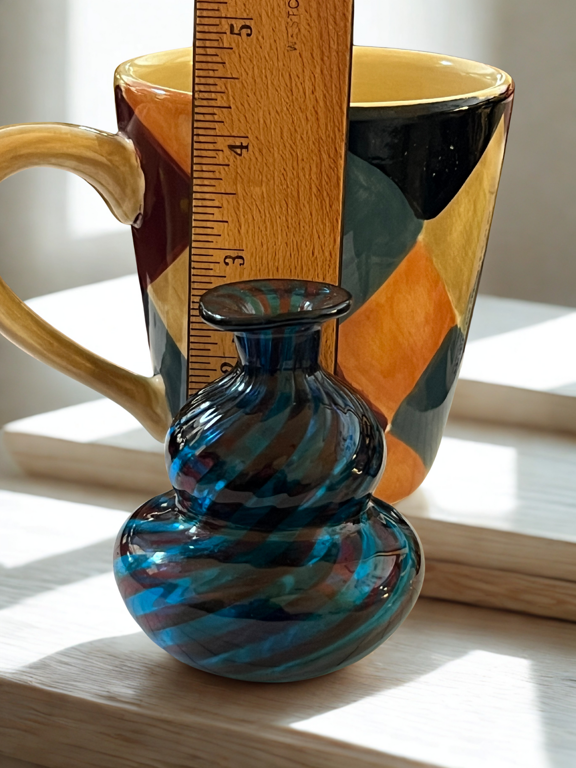 Art Glass Swirl Perfume Bottle Cobalt Blue Purple Murano Style Bubble Stopper 4.75"